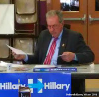 Bettie Harris-Howard acted as the Caucus Captain for the Hillary Clinton supporters, speaking briefly on why she thought Clinton would make the best candidate to be elected President. Agreeing with Harris-Howard to "Vote Democrat no matter who that Democrat is", and speaking in favor of Ms. Clinton was Ian Haight-Ashton. Resident Kim Adkins also spoke in favor of a Clinton vote. All three cited Clinton's experience and ability to "hit the ground running" rather than be bogged down with months of having to learn the ropes and the players of national level government.